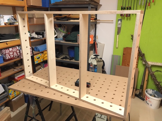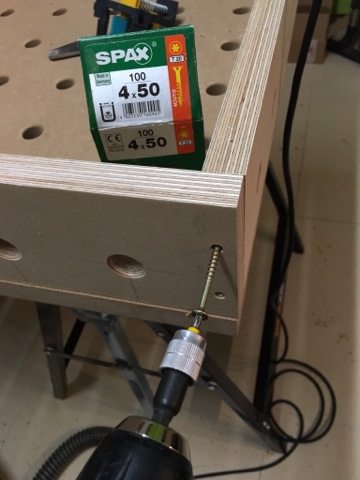 Abschliessend habe ich die Rahmenteile zusammengesteckt und die Eck- und T-Verbindungen zusätzlich zu den Holzdübeln mit SPAX T-Star verschraubt.