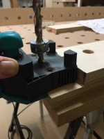 Also kam der Meiseterdübler wieder mal zum Einsatz. Bauartbedingt muss man beim Meisterdübler allerdings einen relativ großen Randabstand einhalten, was dazu führt, dass mir bei zwei 8er Dübeln der Abstand untereinander zu klein war.
