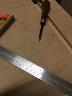 Als nächstes waren die Bohrungen der Werkplatte dran…d.h. einmessen, anzeichnen und vorstechen.