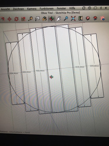 Um den Zuschnitt der Leisten zu optimieren, habe ich mal kurz SketchUp angeschmissen, grob die notwendigen Längen ermittelt und die Leisten auf der TKS zugeschnitten. Natürlich geht es auch ohne SketchUp Planung indem man alle Leisten auf eine Länge sägt, aber ich hatte dadurch wieder mal Gelegenheit zu zeichnen 😉