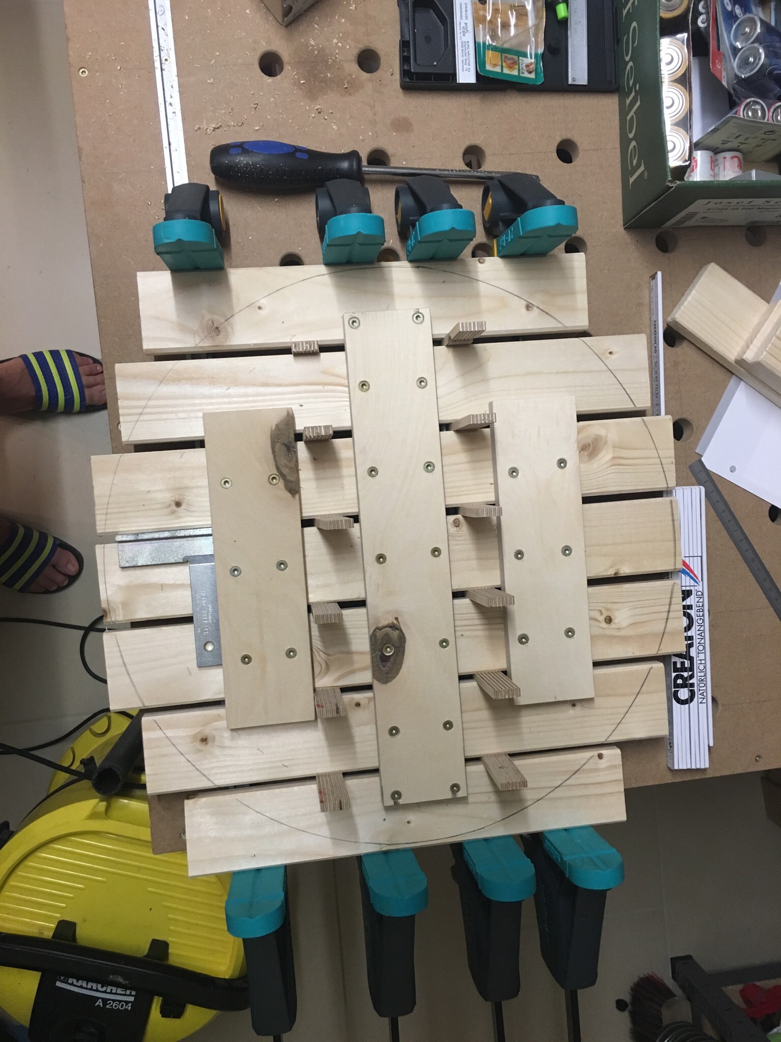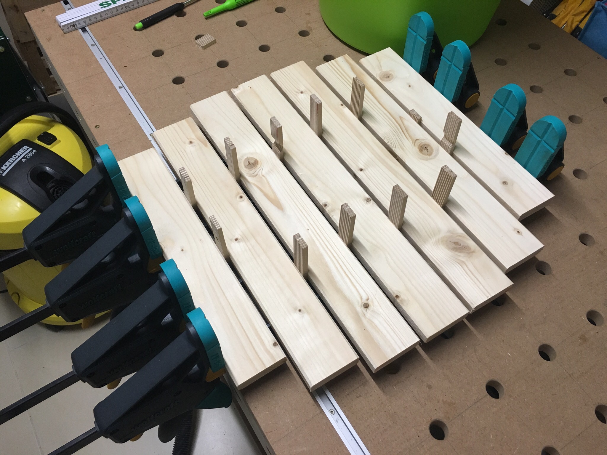 Danach habe ich die Leisten zusammengespannt, um die Lage und Abmessungen der Querstreben zu ermitteln.