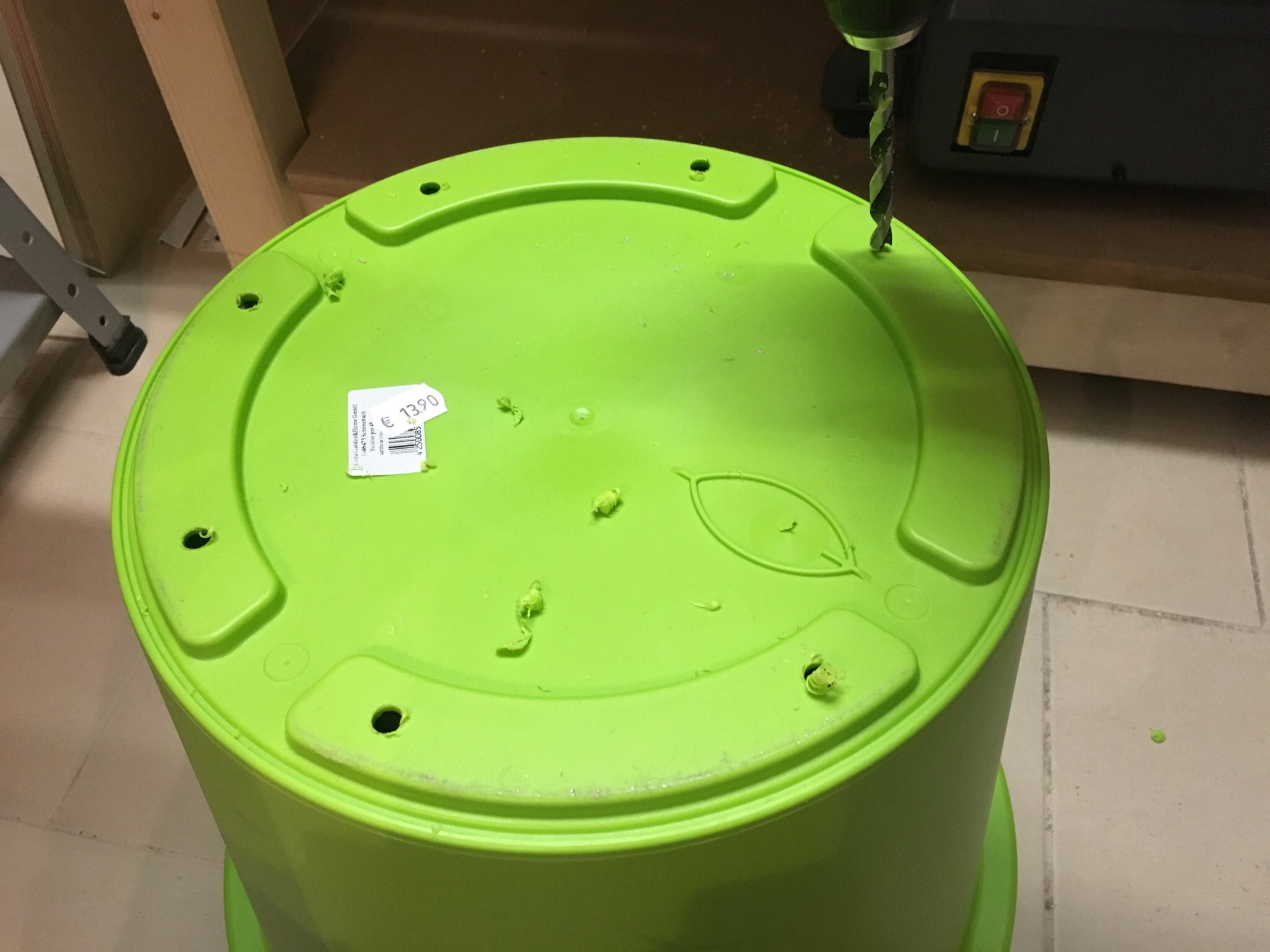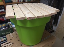 Zum Schluss noch das Finish mit Öl und ein paar Löcher in den Blumenkübel gebohrt, damit sich im Kübel kein Regenwasser sammelt.