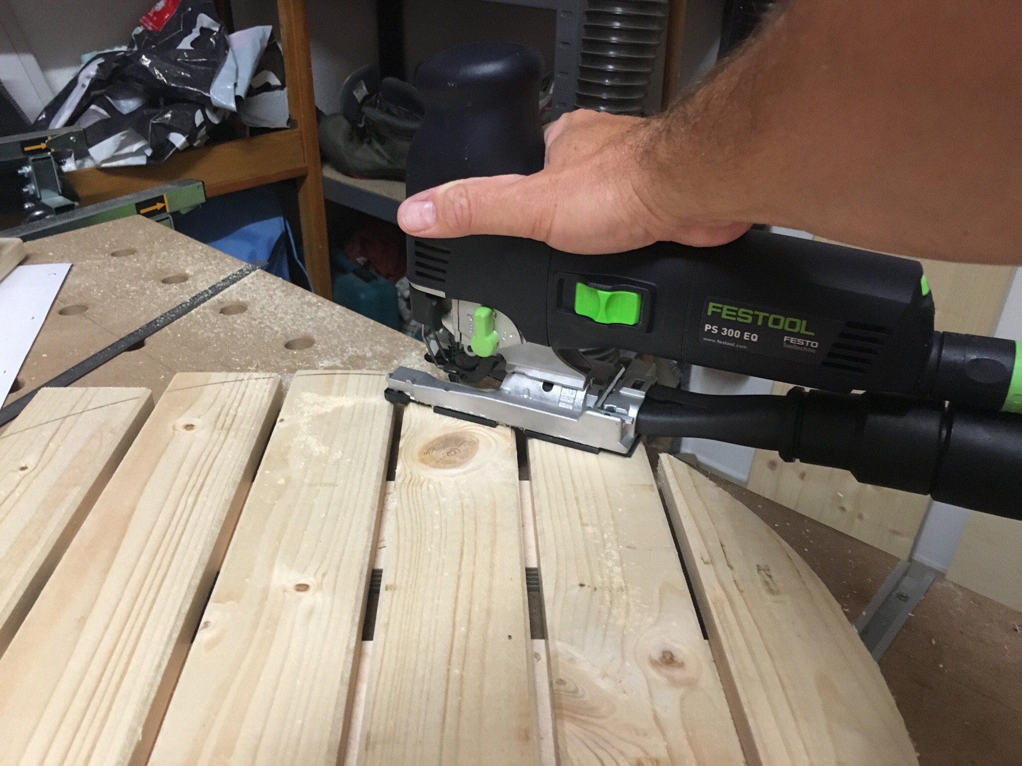 Als nächstes ging es weiter mit der finalen Kontur. Gesägt wurde von der Oberseite. Also nochmal anzeichnen  und los.