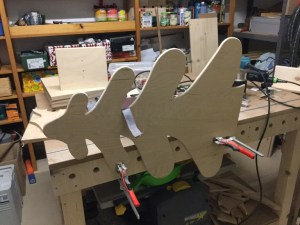 Die Abmessungen, passend für das Fenster im Flur, waren schnell ermittel und so wurde erstmal eine Schablone erstellt und auf das Brett (12er MPX) übertragen.