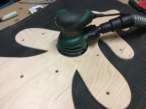 …sowie zusätzliches Schleifen der Kanten mit Schmiergelpapier und Bearbeitung der Flächen mit dem Exzenterschleifer.