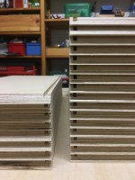 Ob das doch sehr verzogene Buche Sperrholz der Baumarktware zuzuschreiben oder „normal“ ist, kann ich nicht sagen. Für den Bau hatte es auf Grund der Abmessungen der Bodenplatten keine negativen Auswirkungen.