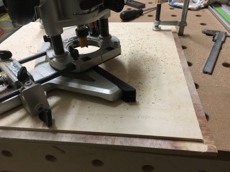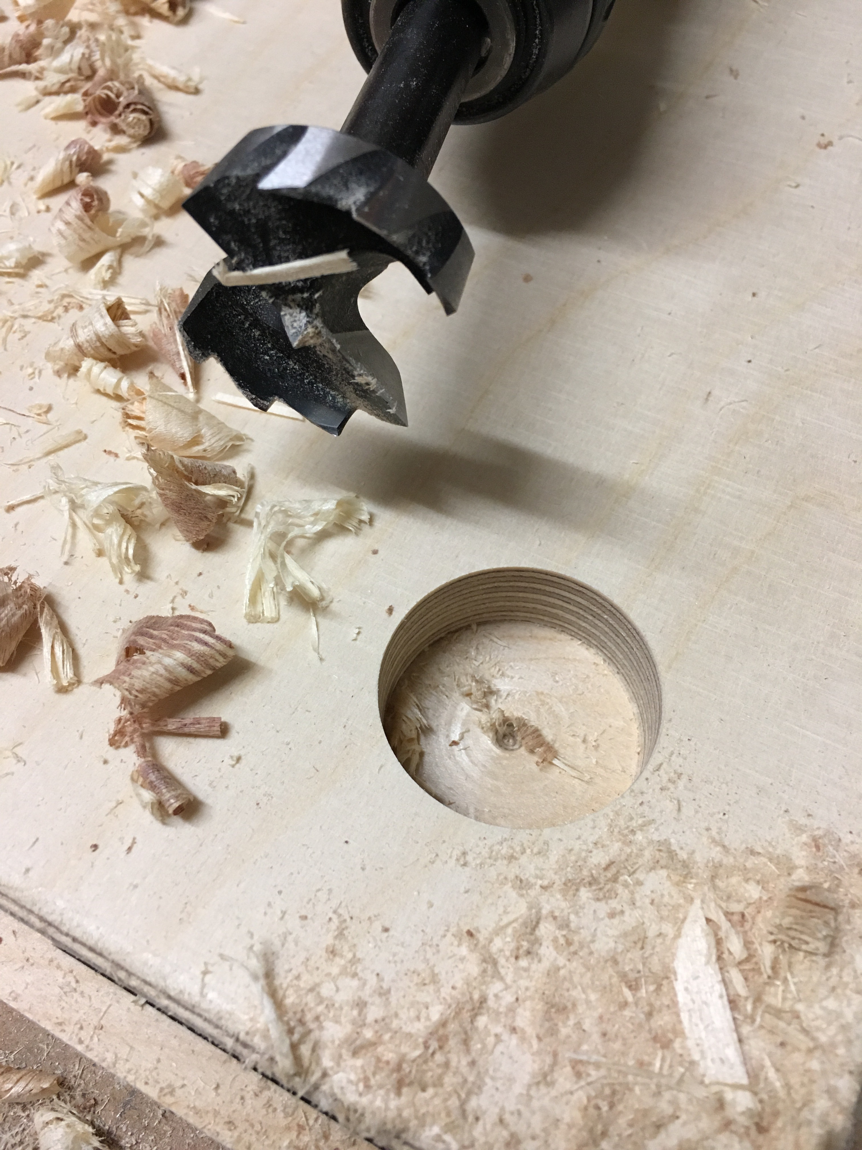 Hier hat sich wieder gezeigt, der Famax Bormax Forstnerbohrer bohrt absolut saubere Löcher mit schönen ausriss-freien Kanten. Anschließend wieder die Kanten mit dem Abrundfräser bearbeitet und alles schön verschliffen.