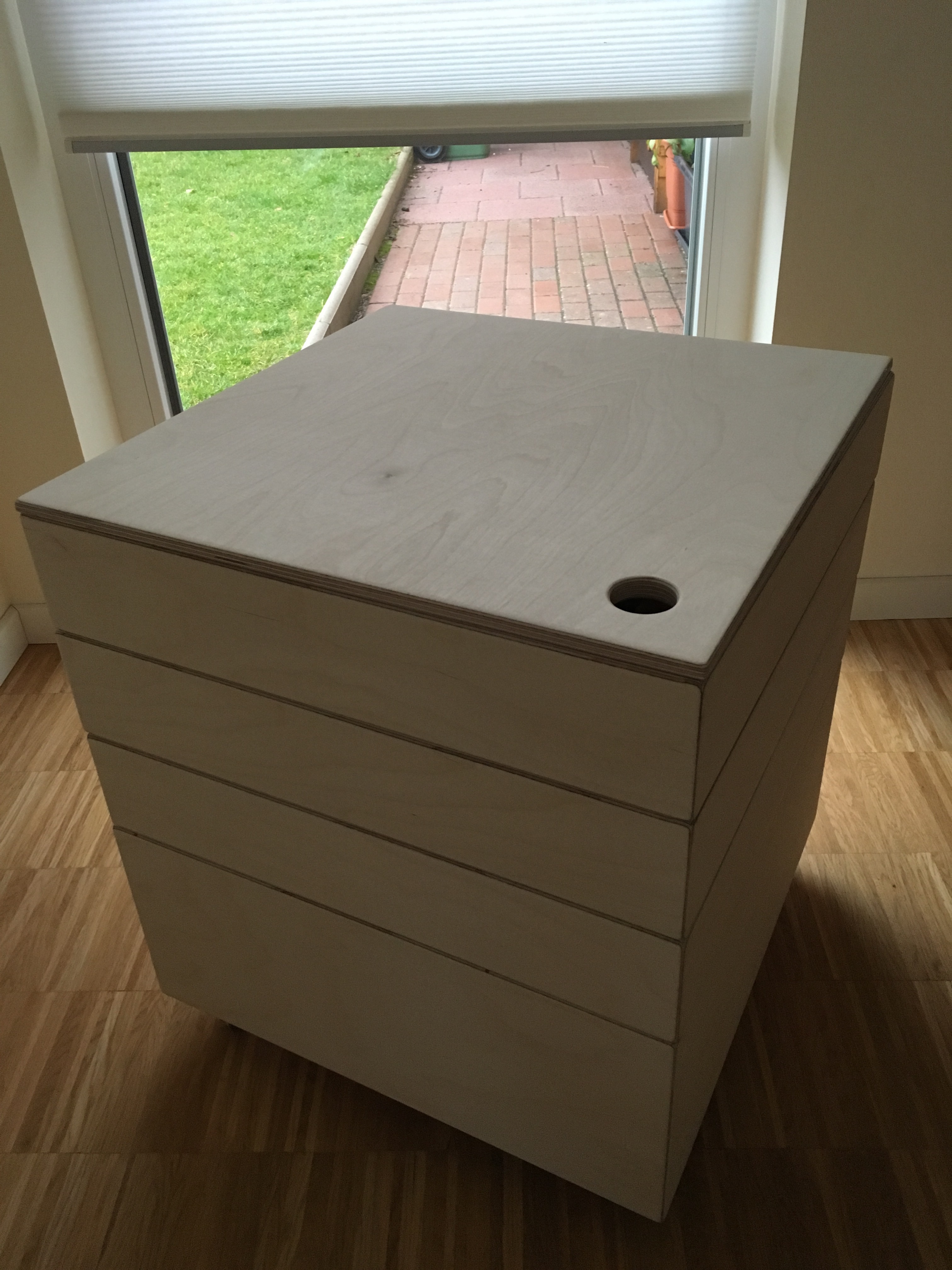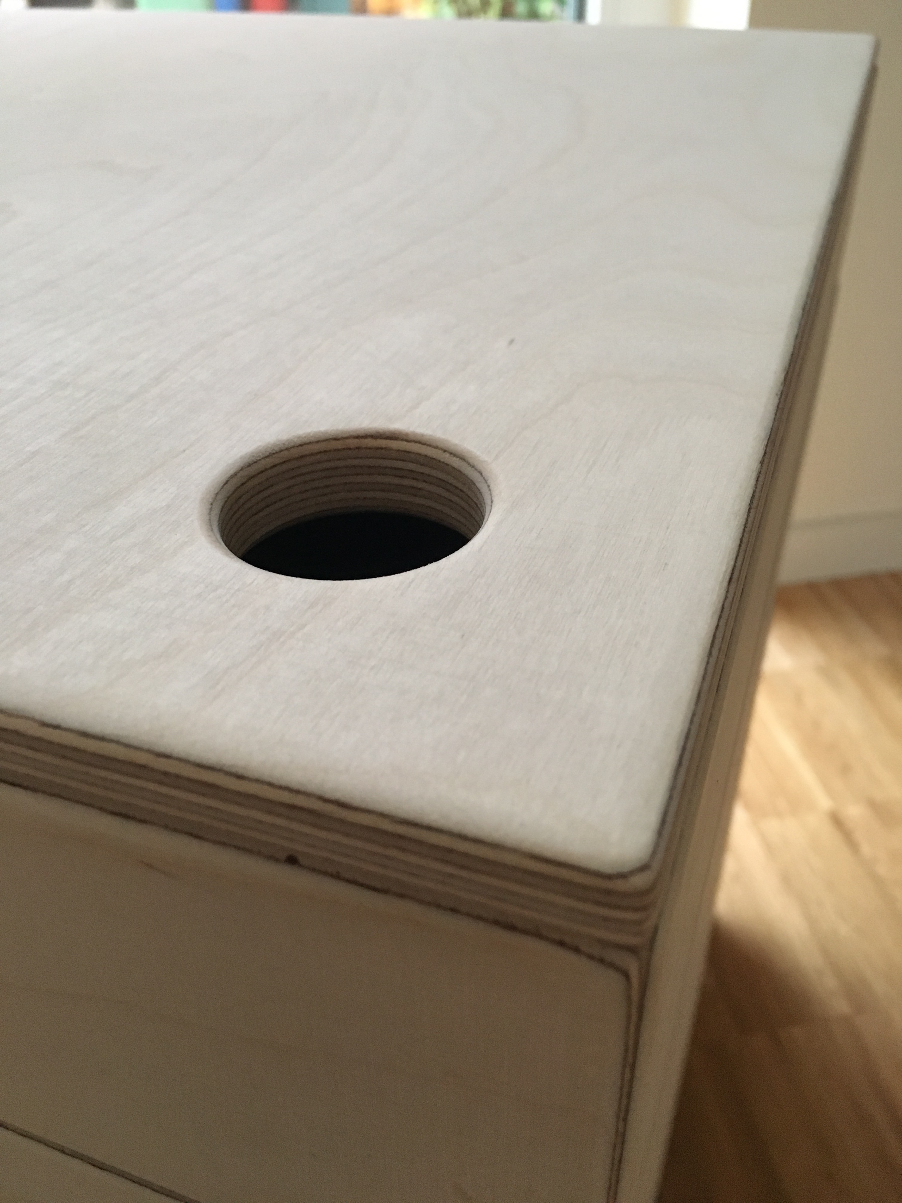 An einer Ecke habe ich dann noch ein Griffloch gesezt, damit der Deckel besser abgehoben werden kann.