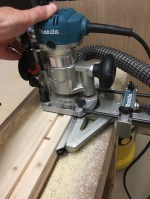 Das vordere Brett ist etwas höher, da ich hier noch eine T-Nutschiene eingefräst habe, für einen späteren Anschlag. Alle Kanten wurden anschließend noch mit einem 3 mm Abrundfräser bearbeitet.