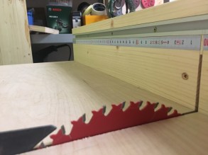 Erstaunlicherweise hat die Führung mit nur einer Leiste sehr gut funktioniert, so dass ich vorerst auf die anfangs weitere Leiste seitlich des Sägetisches erstmal verzichtet habe.