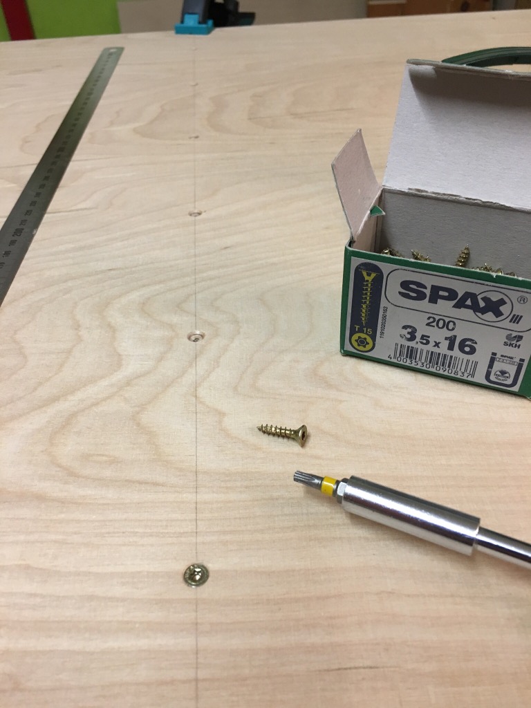 Das hintere Brett mit einem Winkel ausrichten und verschrauben ist ausreichend genau. Für die Ausrichtung und Montage des vorderen Anschlagbrett ist schon etwas mehr Aufwand notwendig.