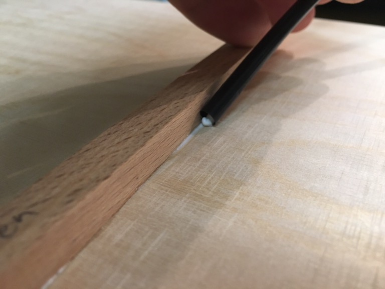 Überschüssiger Leim wurde mit einem Strohhalm entfernt, was übrigens sehr gut funktioniert. Auf Grund der engen Passform der Leiste in der Führungsschiene musste diese allerdings – wie bereits erwähnt – mit Hobel, Beitel und diversen Schleifmitteln noch weiter bearbeitet werden .